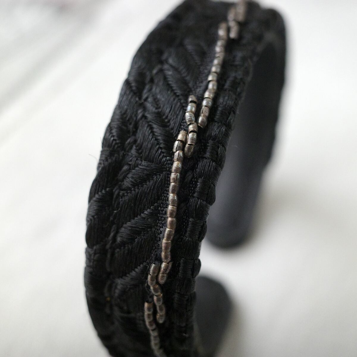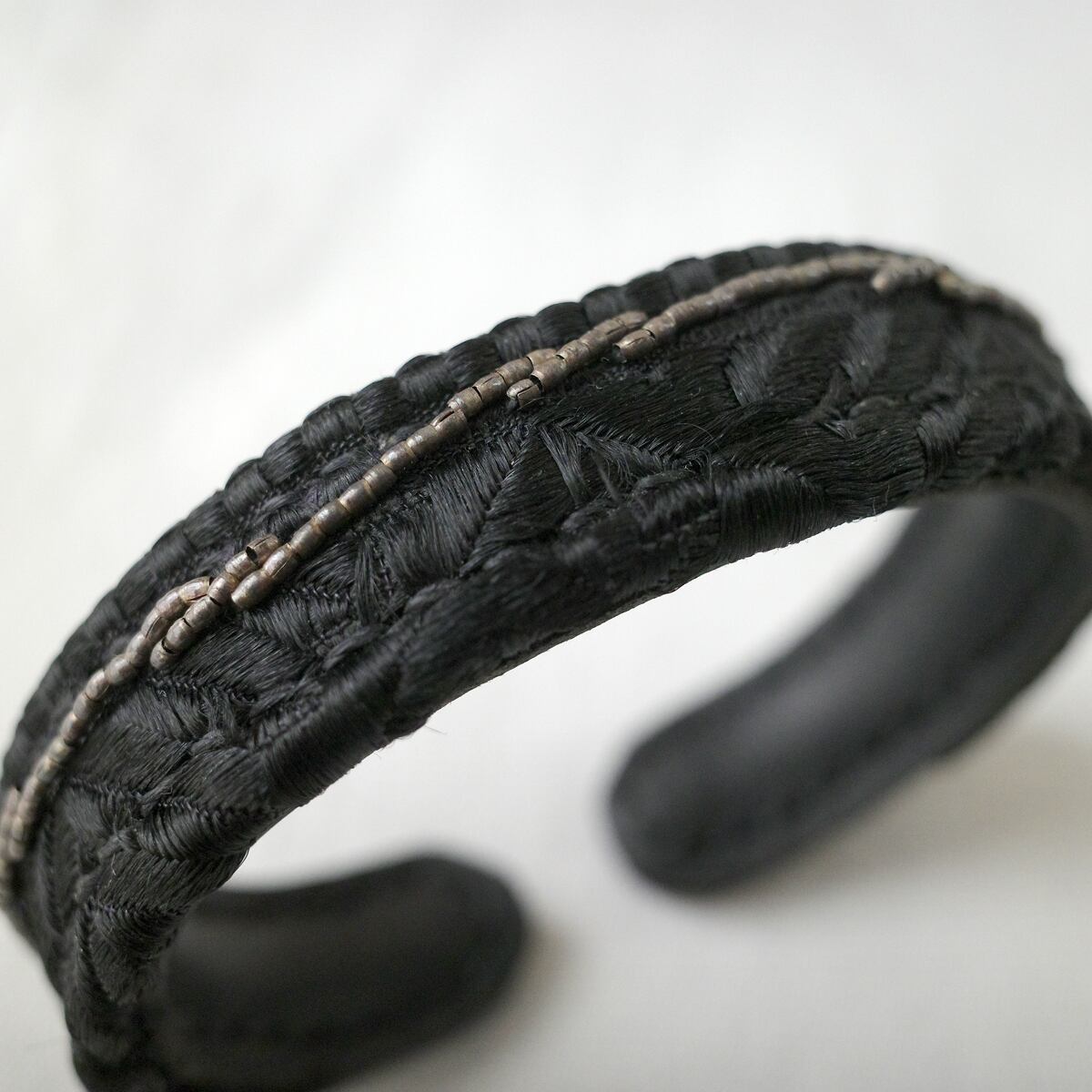 パリの歴史を感じさせる古典的なデザインと、洗練されたモダンなスタイリングが融合したFrench Antique Fabric Bangleは、個性的な仕上がりとなりました。
