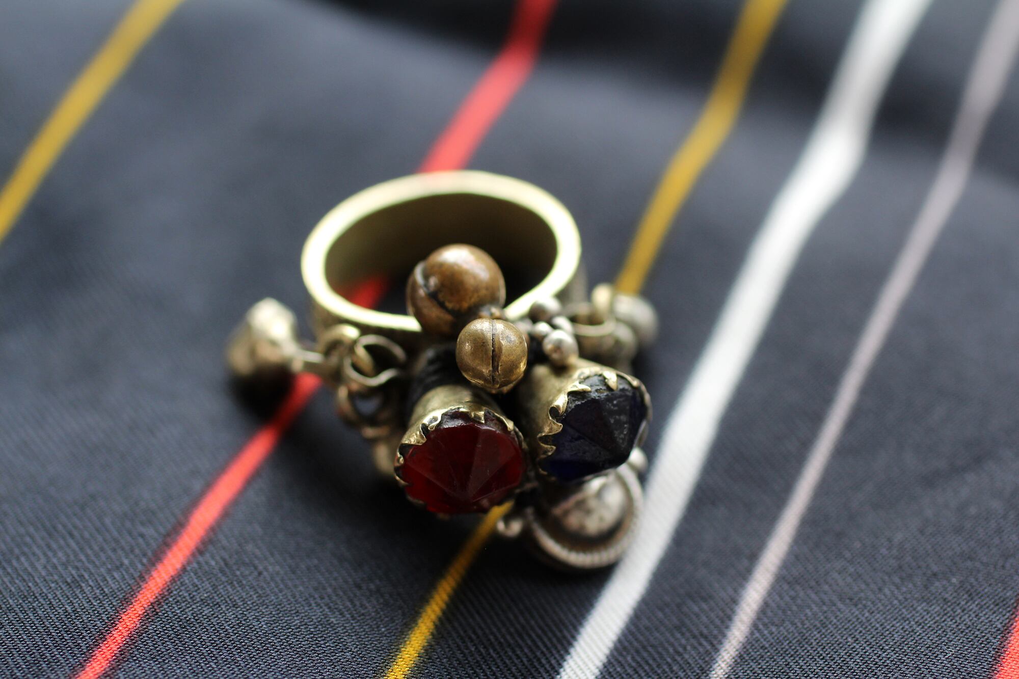 西インドで購入したトライバルシルバーをメインにシルバーベルや錫製のベルを繋げたシンプルなリング。