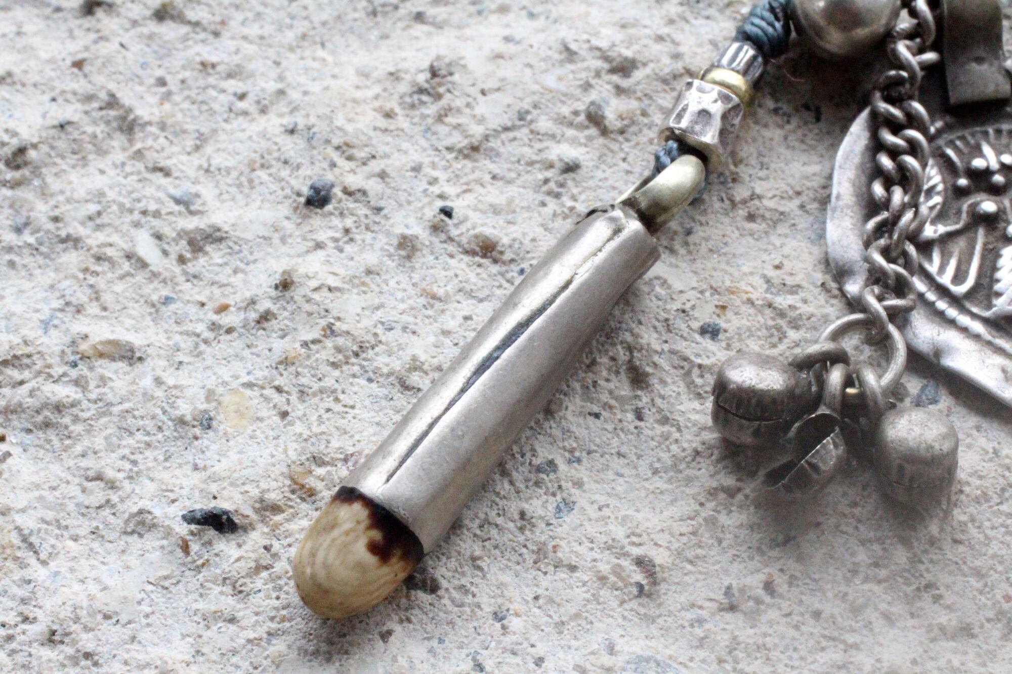 もう片方にはシンプルなヤクボーン(ヤクは標高3000m以上の高地に住むウシ科の生き物です。その骨は現地ではお守りとして装飾品に加工されています)をTOPに、シルバーを加えたネックレスです。