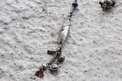 もう片方にはネパールで購入した丸く細工されたパーツに、チベットの真鍮パーツ、インドのスモールベルを繋げました。