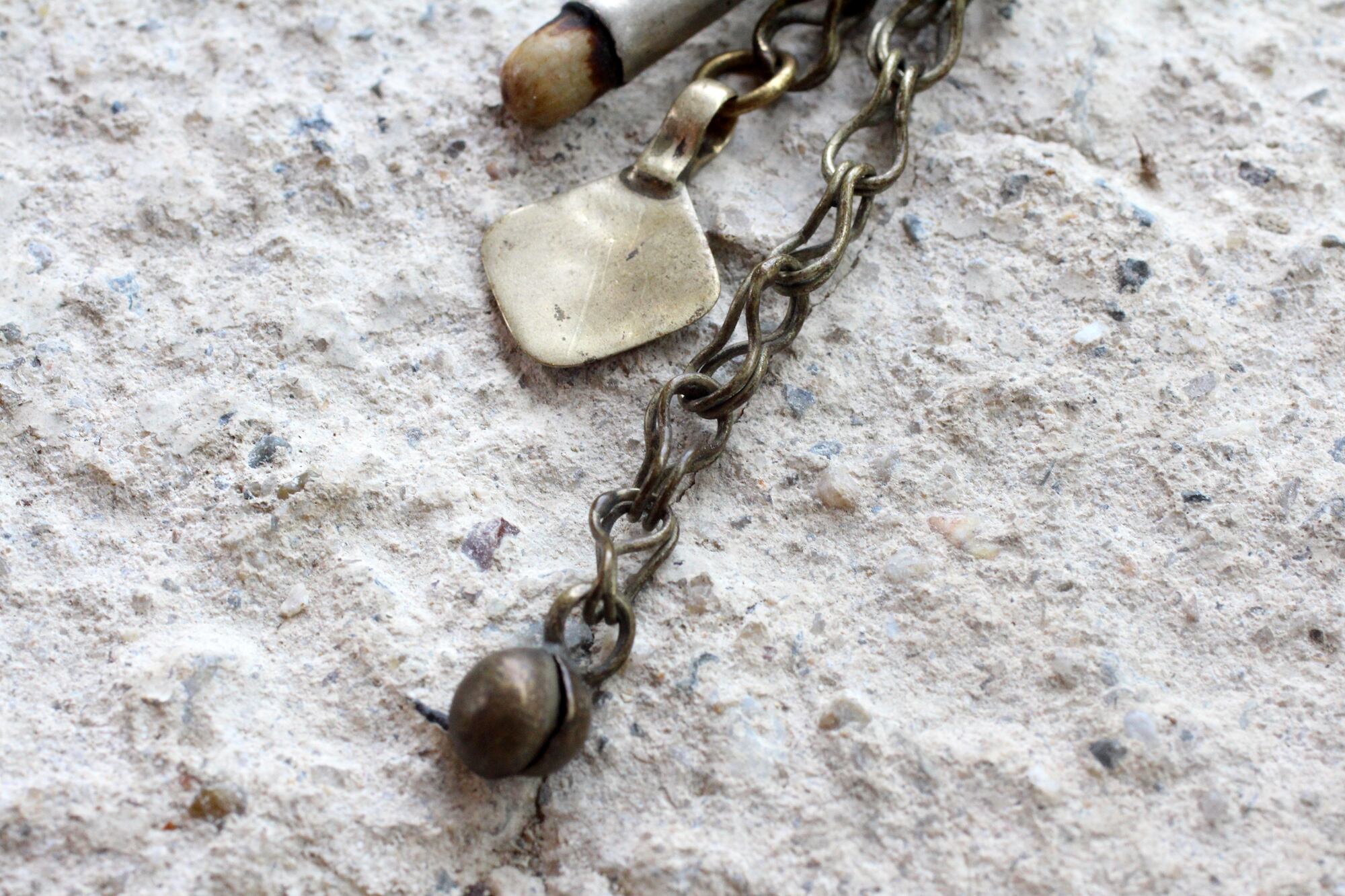 片方には、片方には、錫に約25%のsilverが含まれたチベットのヤクボーン(ヤクは標高3000m以上の高地に住むウシ科の生き物です。その骨は現地ではお守りとして装飾品に加工されます。)の装飾品とタイの山岳民族のシルバー。