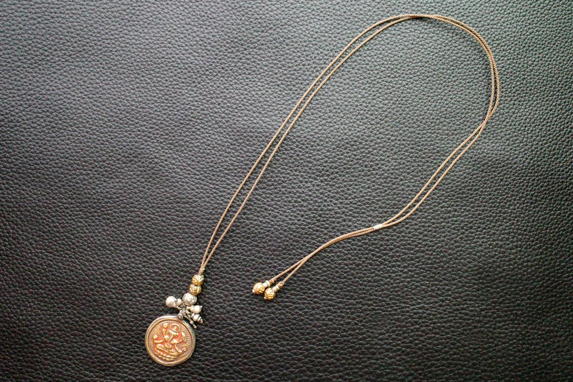 シルバーの枠の中にゴールドメッキされたガネーシャが鎮座しています。