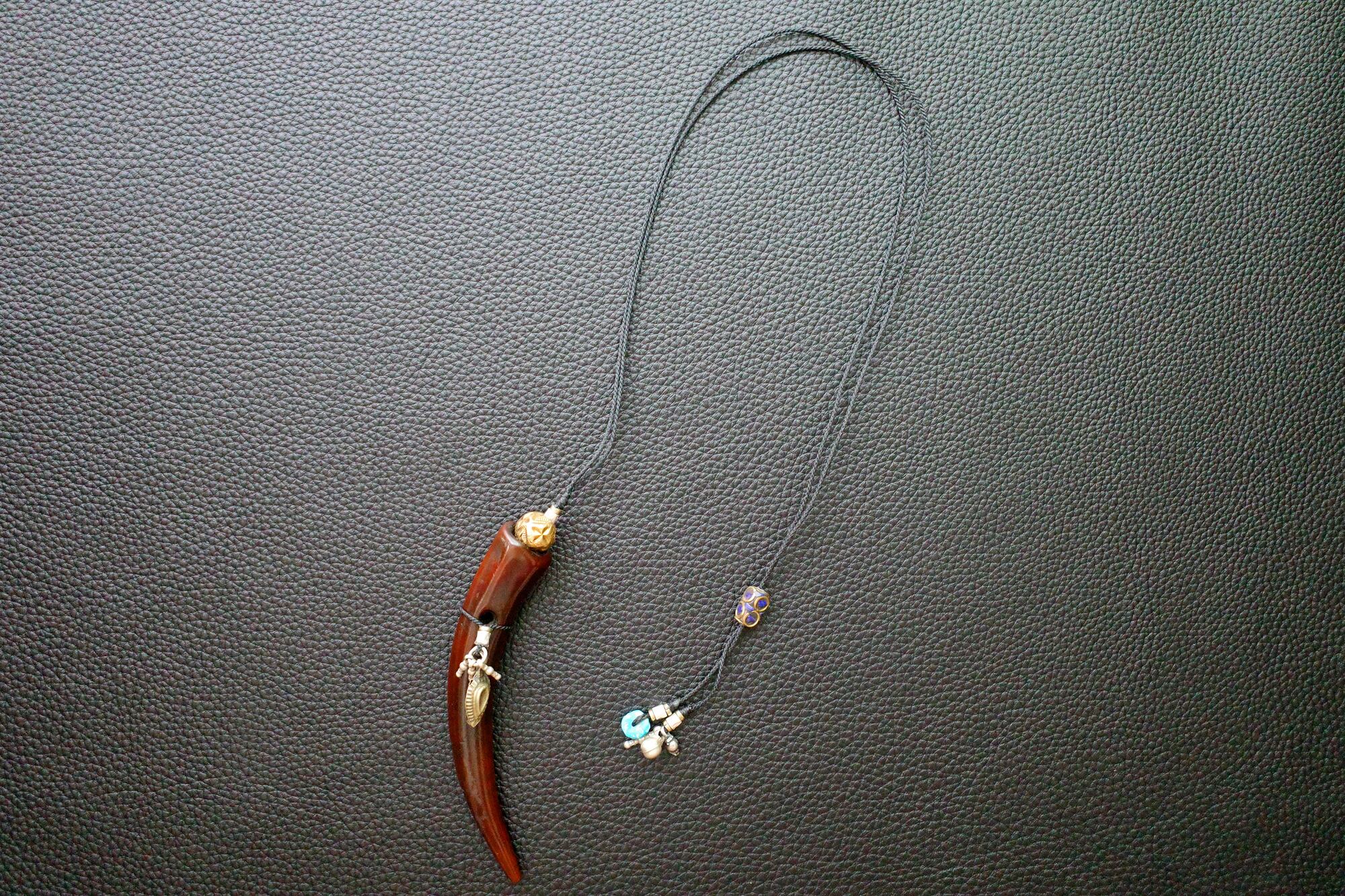 祭事に使用していたトライバルな【角のネックレス】をイメージして製作しました。