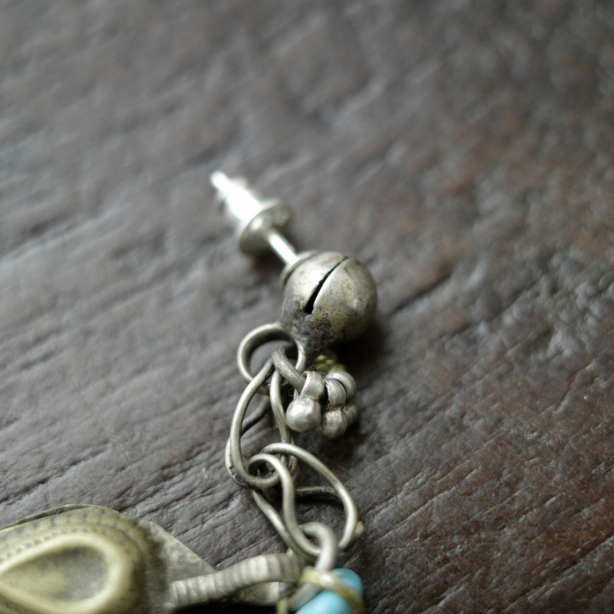 小ぶりで雰囲気の良いトライバルシルバーを多数購入できたので、アジア、アフリカ、アメリカ…どこで生活してるかわからない、私達が想像する架空の部族が身に着けているピアスを作ろうと考えました。
